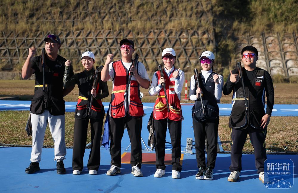 11月15日,第十五届全国飞碟双向射击混合团体赛金牌、铜牌在广州举行。冠军由福建队的于凌峰/蒋依婷获得,亚军为广东队的窦晓阳/车宇飞,季军为上海队的张敬植/宋正毅。 ^ 福建队冠军组合于凌峰(左三)/蒋依婷(右三)、广东队亚军组合杜淑艳(左一)/崔宇飞(左二)、上海队季军组合张敬之(右一)/宋正义在赛后合影。新华社记者潘玉龙供图↑福建队球员于林峰在比赛中。新华社记者潘玉龙供图↑福建队球员于林峰在比赛中。新华社记者 肖恩·纳恩 ↑福建队球员蒋依婷在比赛中。图片来源:新华社记者 Sean Nunn ↑贾福建队球员吴亦婷在比赛中。新华社记者 肖恩·南 摄 ↑广东队双人组合杜书阳/车宇飞(右)在比赛中。图:新华社记者潘玉龙↑广东队球员崔宇飞在比赛中。图片:新华社记者潘玉龙↑广东队球员杜希阳在比赛中。图:新华社记者潘玉龙↑广东队球员崔宇飞在比赛中。图片:新华社记者潘玉龙↑上海队张静芝在比赛中。摄影:新华社记者潘玉龙↑上海队宋正义在比赛中。图片来源:新华网记者 肖恩·纳恩 ↑ 上海队球员张静植在比赛中。图片:新华社记者潘玉龙↑陕西队球员刘婷在比赛中。图片:新华社记者潘玉龙↑陕西省队比赛中的王安涛。照片:X印化记者 Sean Nunn ↑比赛中的选手。新华社记者 潘玉龙 供图