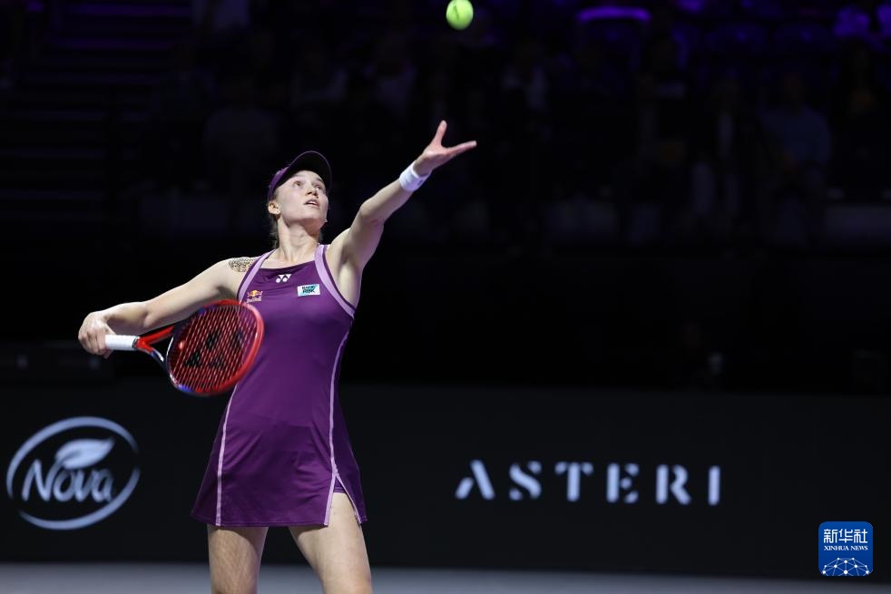11月7日,雷巴基娜在一场比赛中发球。当日,在沙特阿拉伯利雅得举行的WTA跨年决赛半决赛中,哈萨克斯坦选手雷巴金娜以2-1击败美国选手佩古拉晋级决赛。新华社王凯书供图11月7日,雷巴基娜在比赛中回球。当日,在沙特阿拉伯利雅得举行的WTA跨年决赛半决赛中,哈萨克斯坦选手雷巴金娜以2-1击败美国选手佩古拉晋级决赛。新华社王凯书供图 11月7日,佩古拉在比赛中回球。当日,在沙特阿拉伯利雅得举行的WTA跨年决赛半决赛中,哈萨克斯坦选手雷巴金娜以2-1击败美国选手佩古拉晋级决赛。新华社王凯书供图 11月7日,佩古拉在比赛中回球。当天,在沙特阿拉伯利雅得举行的WTA跨年决赛半决赛中,哈萨克斯坦选手雷巴金娜2-1击败美国佩古拉晋级决赛。新华社王凯书供图 11月7日,雷巴基娜(左)与佩古拉赛后握手。当日,在沙特阿拉伯利雅得举行的WTA跨年决赛半决赛中,哈萨克斯坦选手雷巴金娜以2-1击败美国选手佩古拉晋级决赛。新华社王凯书供图 11月7日,热巴·真纳赛后庆祝胜利。当日,在沙特阿拉伯利雅得举行的WTA跨年决赛半决赛中,哈萨克斯坦选手雷巴金娜以2-1击败美国选手佩古拉晋级决赛。新华社王凯书供图 11月7日,雷巴基娜赛后庆祝胜利,并向观众赠送亲笔签名的茶球。当日,在沙特阿拉伯利雅得举行的WTA跨年决赛半决赛中,哈萨克斯坦选手雷巴金娜以2-1击败美国选手佩古拉晋级决赛。辛赫供图ua通讯社 王凯书 11月7日,雷巴基娜赛后庆祝胜利,并向观众赠送亲笔签名的网球。当日,在沙特阿拉伯利雅得举行的WTA跨年决赛半决赛中,哈萨克斯坦选手雷巴金娜以2-1击败美国选手佩古拉晋级决赛。新华社王凯书供图 11月7日,雷巴基娜(左)与佩古拉赛前合影。当日,在沙特阿拉伯利雅得举行的WTA跨年决赛半决赛中,哈萨克斯坦选手雷巴金娜以2-1战胜美国选手佩古拉,晋级决赛。新华社记者 王凯书 供图