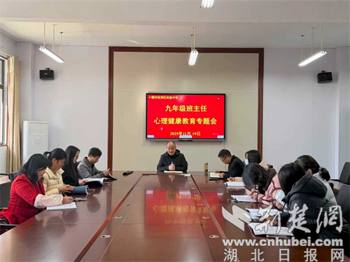荆楚网(湖北日报网)讯(通讯员 李文杰 袁龙飞)为全面贯彻落实教育部和十堰市关于加强学生心理健康教育的有关文件精神,推动学校心理健康教育工程实施,2025年11月19日,张湾区实验中学召开了各年级教师心理健康教育专题会议。各年级领导参加了迎新会,全体任课老师也参加了。